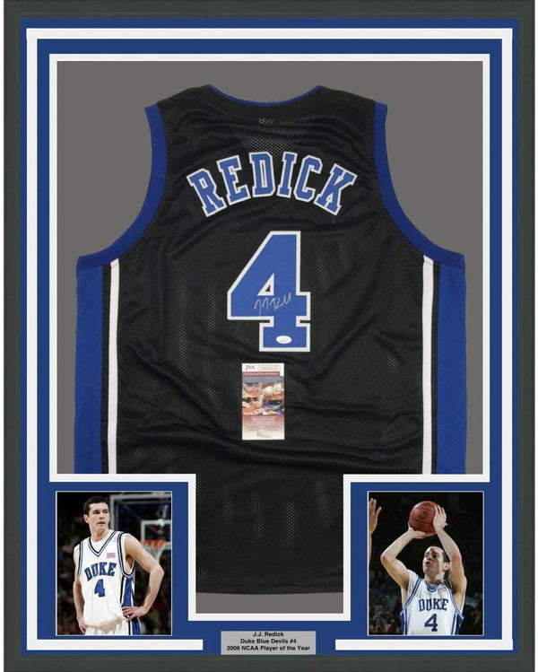 Framed Autographed/Signed JJ J.J. Redick 35x39 Duke Black College Basketball Jersey JSA COA