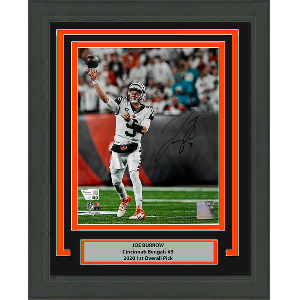 Framed Autographed/Signed Joe Burrow Cincinnati Bengals 8x10 Football Photo Fanatics COA #2