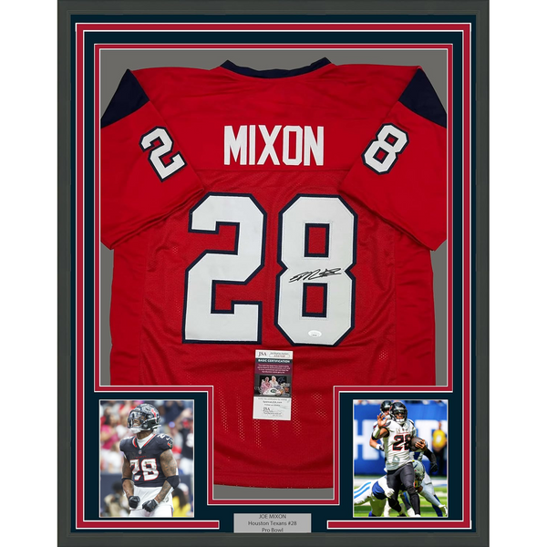 Framed Autographed/Signed Joe Mixon 35x39 Houston Red Football Jersey JSA COA