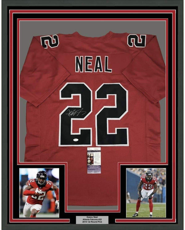 Framed Autographed/Signed Keanu Neal 35x39 Atlanta Color Rush Football Jersey JSA COA