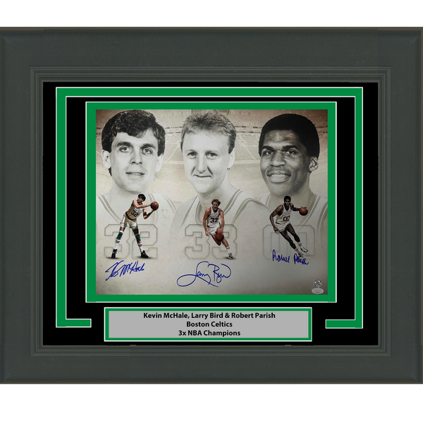Framed Autographed/Signed Larry Bird Kevin McHale Robert Parish Boston Celtics 16x20 Basketball Photo JSA COA