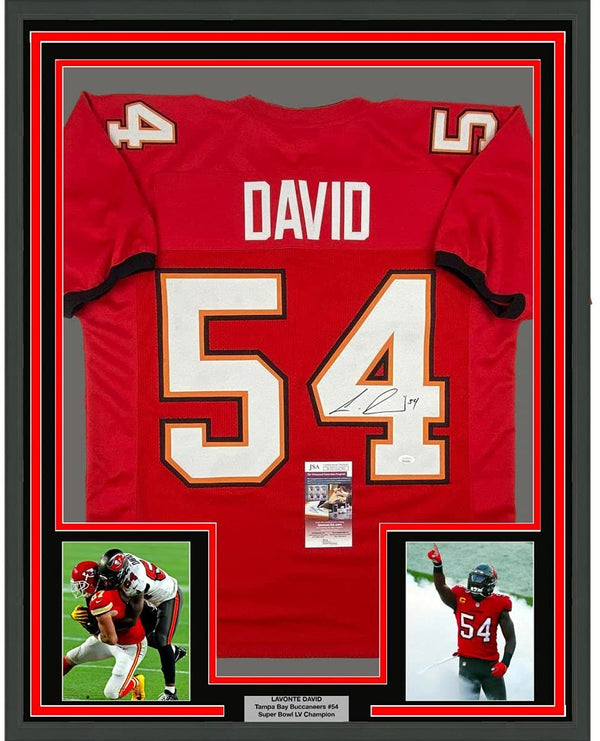 Framed Autographed/Signed Lavonte David 35x39 Tampa Bay Red Football Jersey JSA COA
