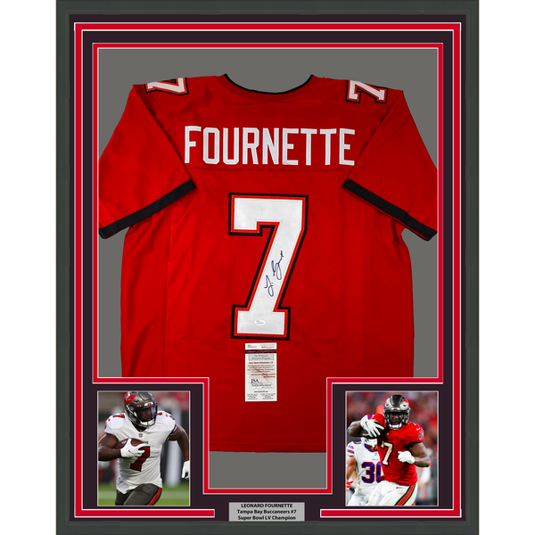 Framed Autographed/Signed Leonard Fournette 35x39 Tampa Bay Red Football Jersey JSA COA