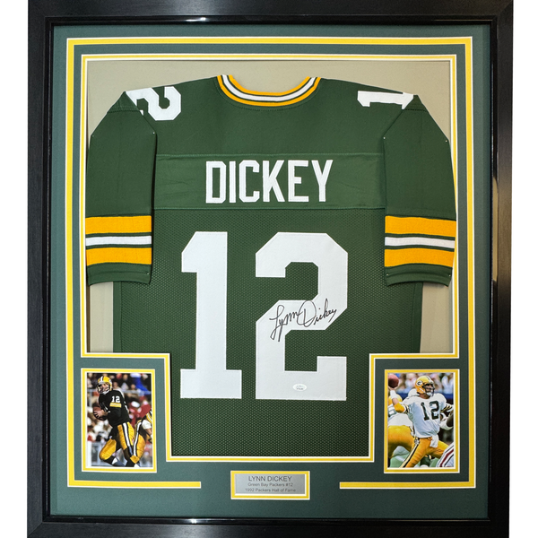 Framed Autographed/Signed Lynn Dickey 35x39 Green Bay Packers Green Football Jersey JSA COA