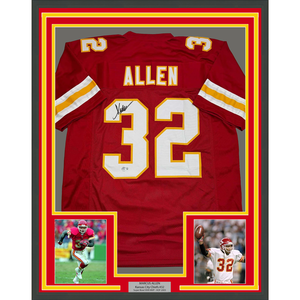 Framed Autographed/Signed Marcus Allen 35x39 Kansas City Red Football Jersey Beckett BAS COA