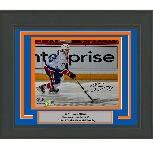 Framed Autographed/Signed Mathew Barzal New York Islanders 8x10 Hockey Photo Beckett BAS COA