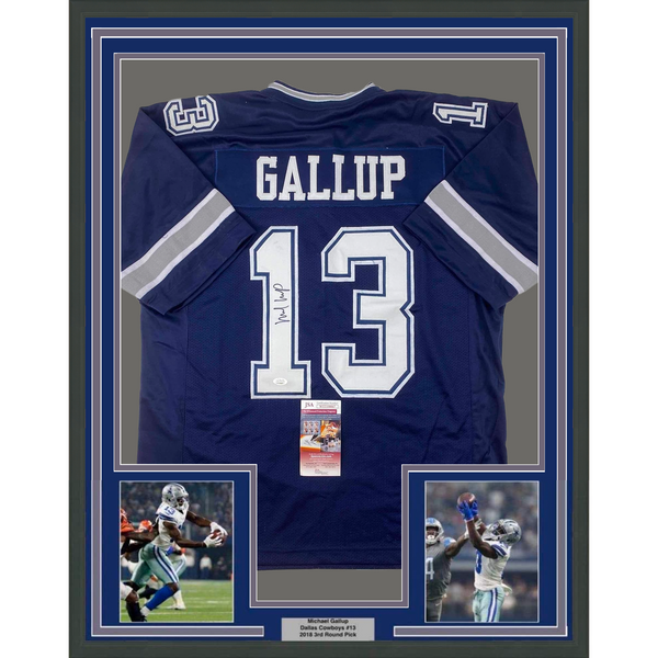 Framed Autographed/Signed Michael Gallup 35x39 Dallas Blue Football Jersey JSA COA