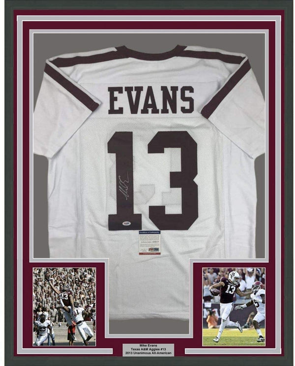 Framed Autographed/Signed Mike Evans 35x39 Texas A&M White College Football Jersey PSA/DNA COA