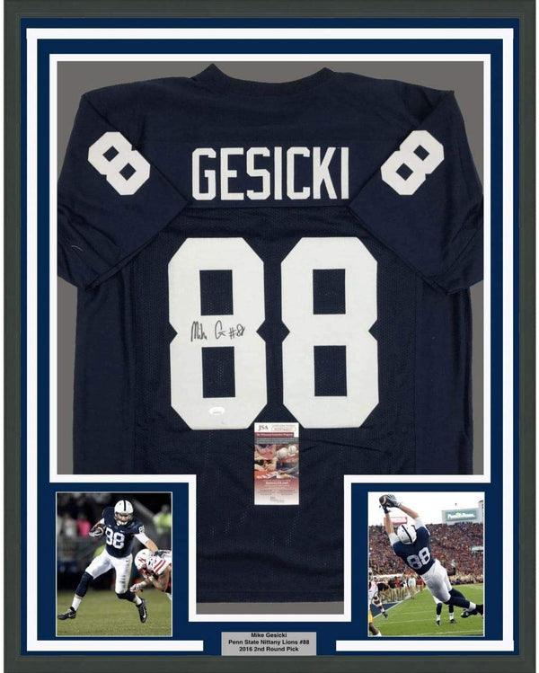 Framed Autographed/Signed Mike Gesicki 35x39 Penn State Blue College Football Jersey JSA COA