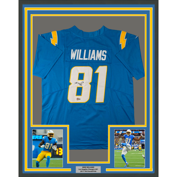 Framed Autographed/Signed Mike Williams 35x39 Los Angeles LA Powder Blue Football Jersey Beckett BAS COA