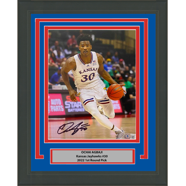 Framed Autographed/Signed Ochai Agbaji Kansas Jayhawks 8x10 Basketball Photo Beckett BAS COA