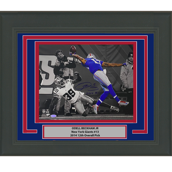 Framed Autographed/Signed Odell Beckham Jr. 2014 ROY The Catch Spotlight New York Giants 11x14 Photo Steiner Sports COA