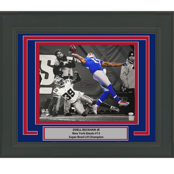 Framed Autographed/Signed Odell Beckham Jr. The Catch New York Giants Spotlight 16x20 Football Photo JSA COA #4