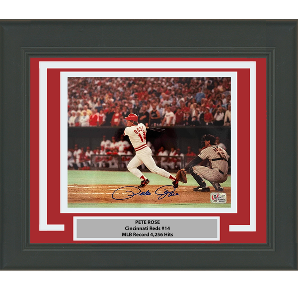 Framed Autographed/Signed Pete Rose Cincinnati Red 8x10 Baseball Photo Athlete Hologram COA Holo #2
