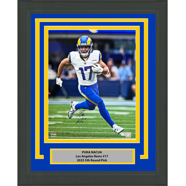Framed Autographed/Signed Puka Nacua Los Angeles LA Rams 16x20 Football Photo Fanatics COA