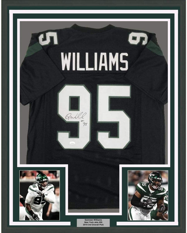 Framed Autographed/Signed Quinnen Williams 35x39 New York Black Football Jersey JSA COA