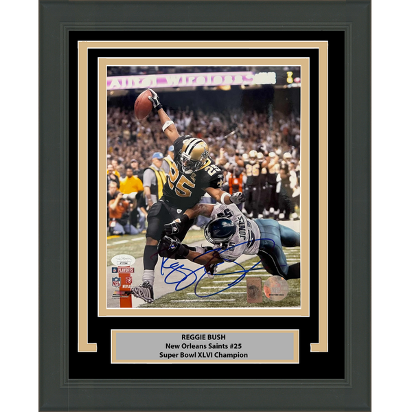 Framed Autographed/Signed Reggie Bush New Orleans Saints 8x10 Football Photo JSA COA
