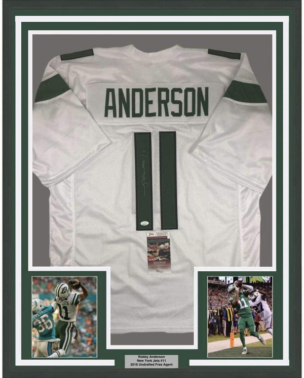 Framed Autographed/Signed Robby Anderson 35x39 New York 2019 White Football Jersey JSA COA