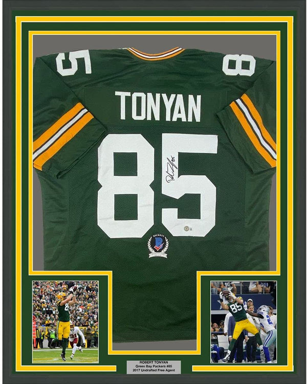 Framed Autographed/Signed Robert Tonyan 35x39 Green Bay Green Football Jersey Beckett BAS COA