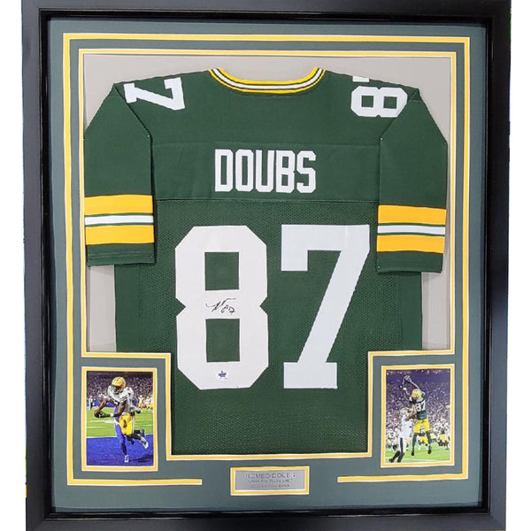 Framed Autographed/Signed Romeo Doubs 35x39 Green Bay Green Football Jersey JSA COA