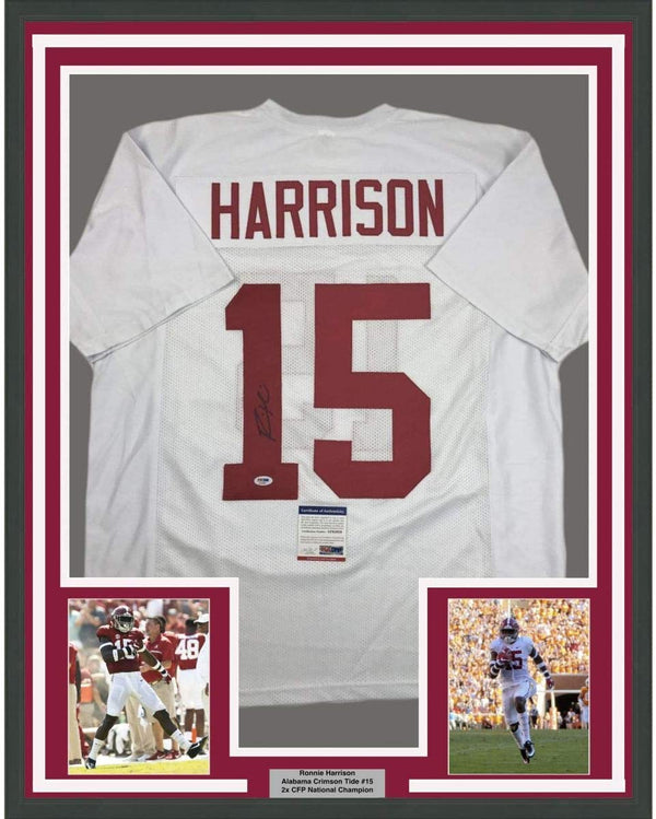 Framed Autographed/Signed Ronnie Harrison 35x39 Alabama White College Football Jersey PSA/DNA COA