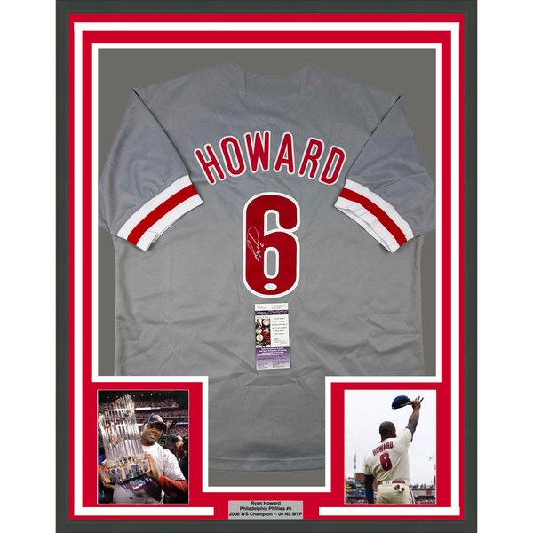 Framed Autographed/Signed Ryan Howard 35x39 Philadelphia Grey Baseball Jersey JSA COA