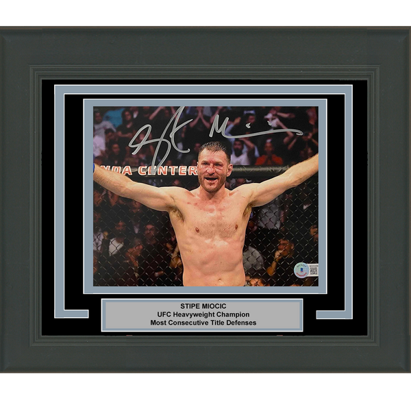 Framed Autographed/Signed Stipe Miocic UFC MMA Black Fighting 8x10 Photo Beckett BAS COA