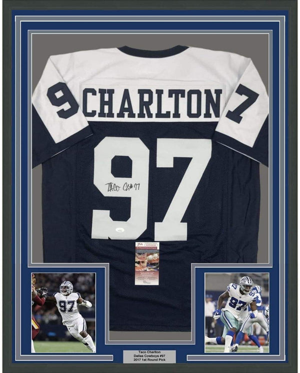 Framed Autographed/Signed Taco Charlton 35x39 Dallas Thanksgiving Day Football Jersey JSA COA