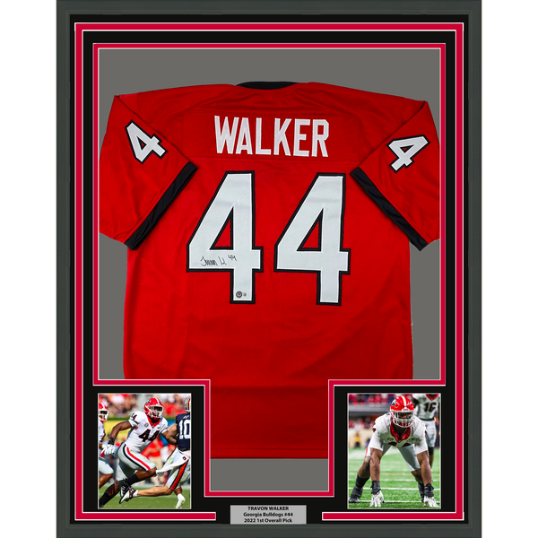 Framed Autographed/Signed Travon Walker 35x39 Georgia Red College Football Jersey Beckett BAS COA