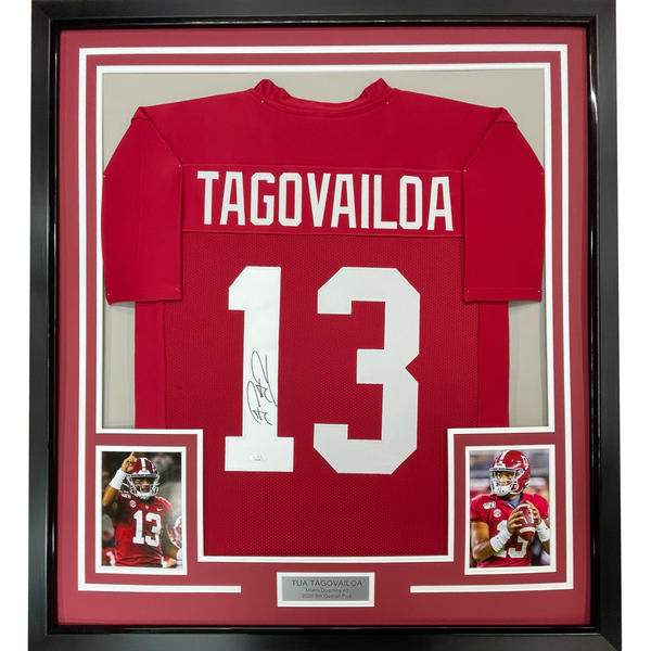Framed Autographed/Signed Tua Tagovailoa 35x39 Alabama Red College Football Jersey Beckett BAS COA