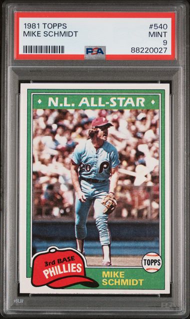 Graded 1981 Topps Mike Schmidt #540 Baseball Card PSA 9 Mint