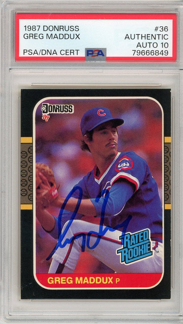 Graded 1987 Donruss Greg Maddux #36 Rookie RC Baseball Card PSA 10 Auto Grade Gem Mint