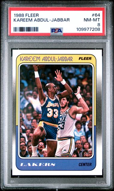 Graded 1988 Fleer Kareem Abdul Jabbar #64 Basketball Card PSA 8 NM-MT