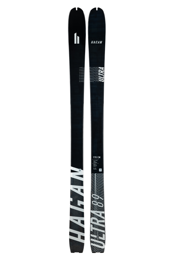 The Hagan ULTRA Series is dedicated to lightness and speed, while maintaining reliability in challenging and technical terrain. The Ultra Series has been completely reengineered, to create skis with better durability and downhill performance, while still shedding weight. With a double "prepack" foil made of a fiberglass and carbon mixture, in addition to a continuous top layer of carbon, we have achieved just that: even lighter skis that have improved reliability, stability and durability. No stone has been left unturned, as we even changed the composition of our top coat to a glossy finish in order to help reduce weight. The Ultra 89 also received the Backline Unisex Touring Skis 80-90 Award.